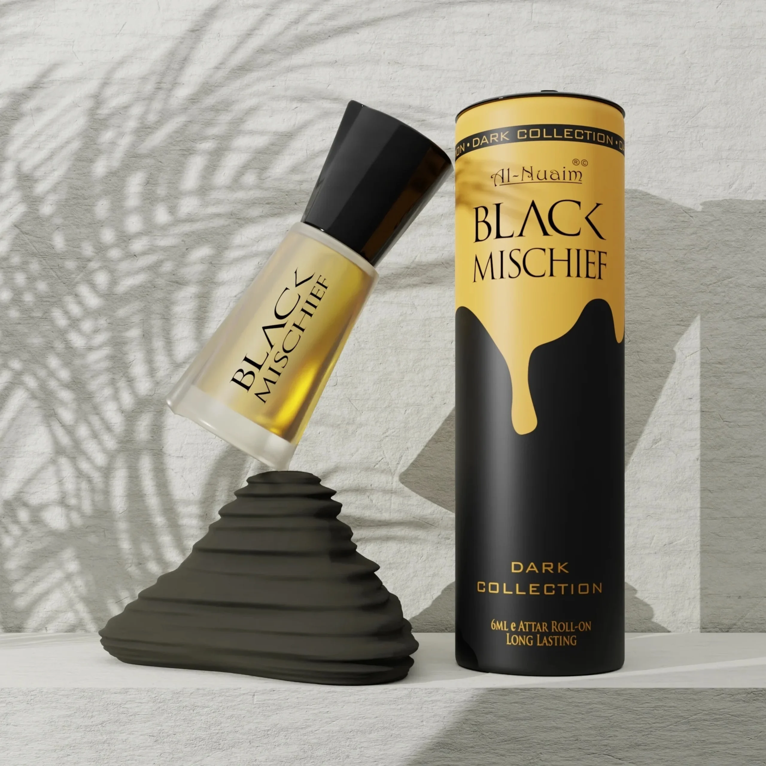Al-Nuaim Black Mischief Attar is a bold and intriguing fragrance crafted for a confident presence. It opens with fresh, vibrant notes that instantly capture attention, followed by a smooth heart enriched with subtle florals and warm spices. The fragrance settles into a deep, sensual base of musk and woody accords, leaving a long-lasting and mysterious trail. Perfect for evening wear and special occasions where you want to stand out effortlessly.