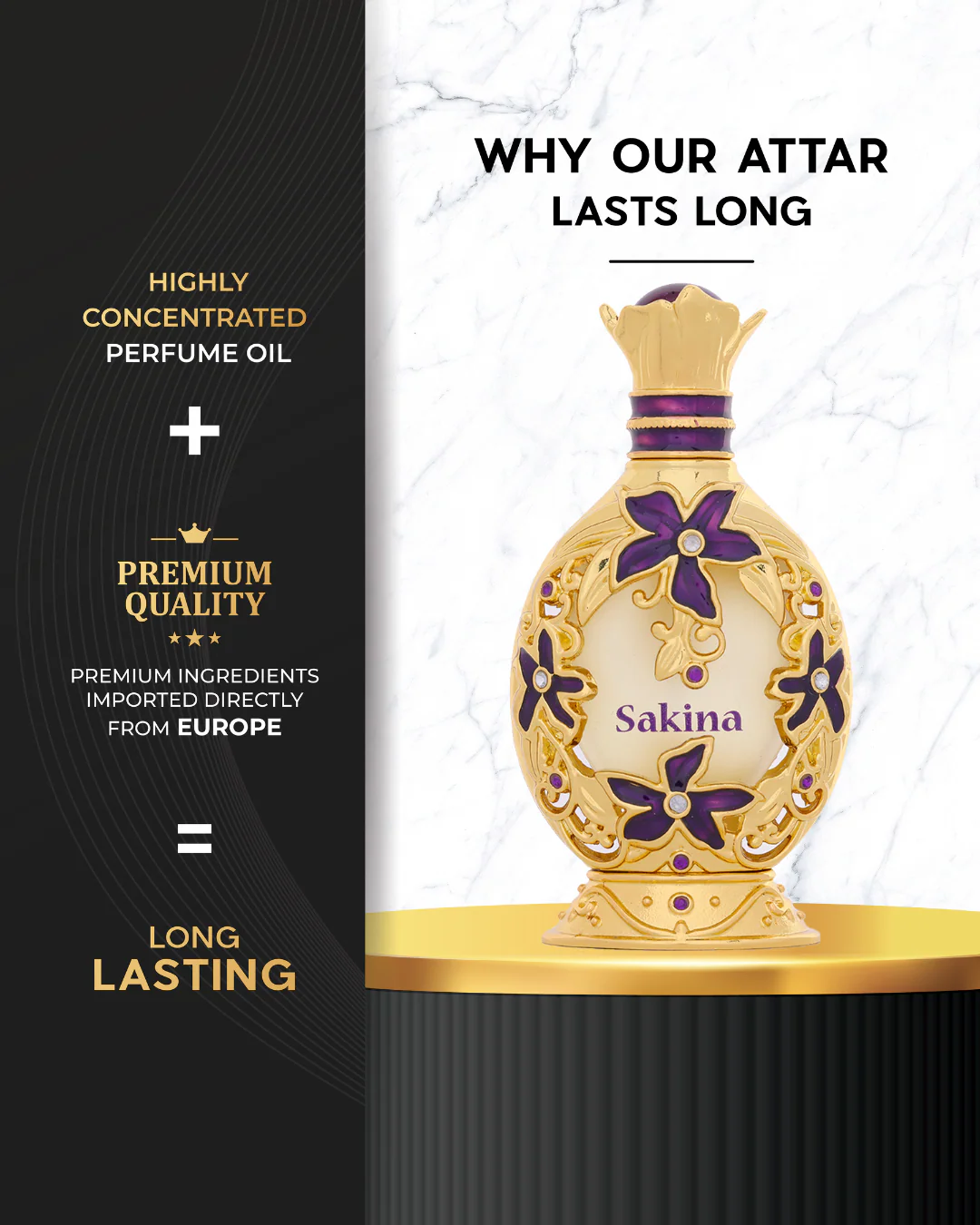 The base rests on smooth sandalwood, earthy oakmoss and rich cedar, giving the fragrance depth and lasting elegance. Though the composition may seem simple at first, Sakina reveals itself as an extraordinary olfactory experience—soft yet powerful, gentle yet unforgettable.